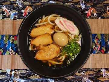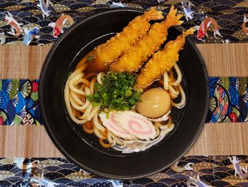 Shrimp Tempura (3 pcs), Chopped Scallion, Naruto & Seasoned Boiled Egg (1)