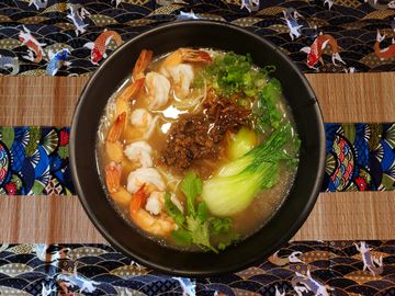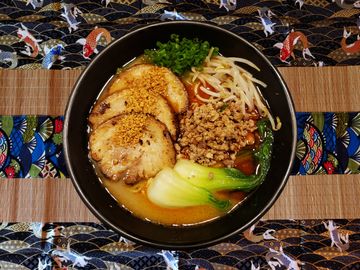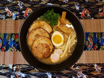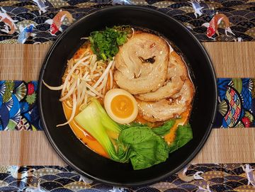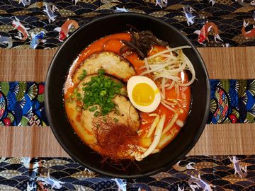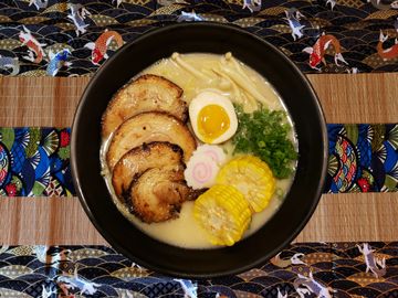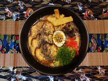 Bamboo Shoots, Chopped Scallion, Black Fungus, Red Ginger, Chopped Black Sesame & Seasoned Boiled Egg (1/2)