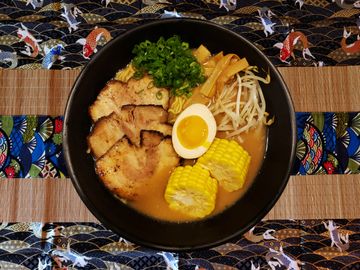 Chopped Scallion, Corn, Mushroom, Naruto & Seasoned Boiled Egg (1/2)
